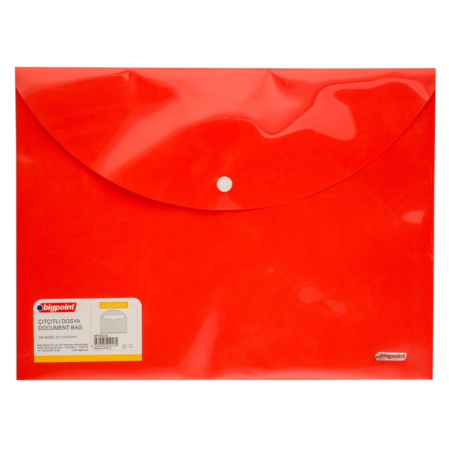 A4 evraklarınız için idealdir, parlak renkli görünümli ve oldukça şıktır. Özel çıtçıtlı mekanizması sayesinde evraklarınız güvendedir.A4 (21 x 29.7 cm) evraklarınızı saklamanız için idealdir.