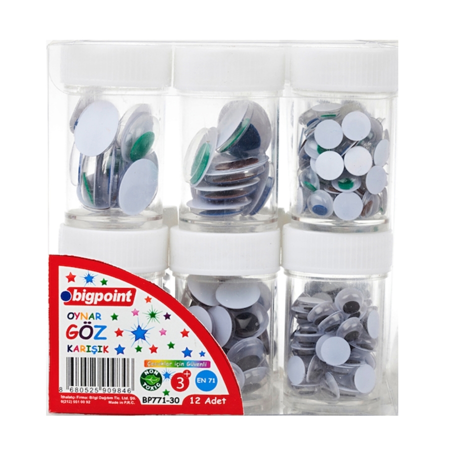 Farklı renklerde ve 3 farklı boylarda renkli oynar gözler