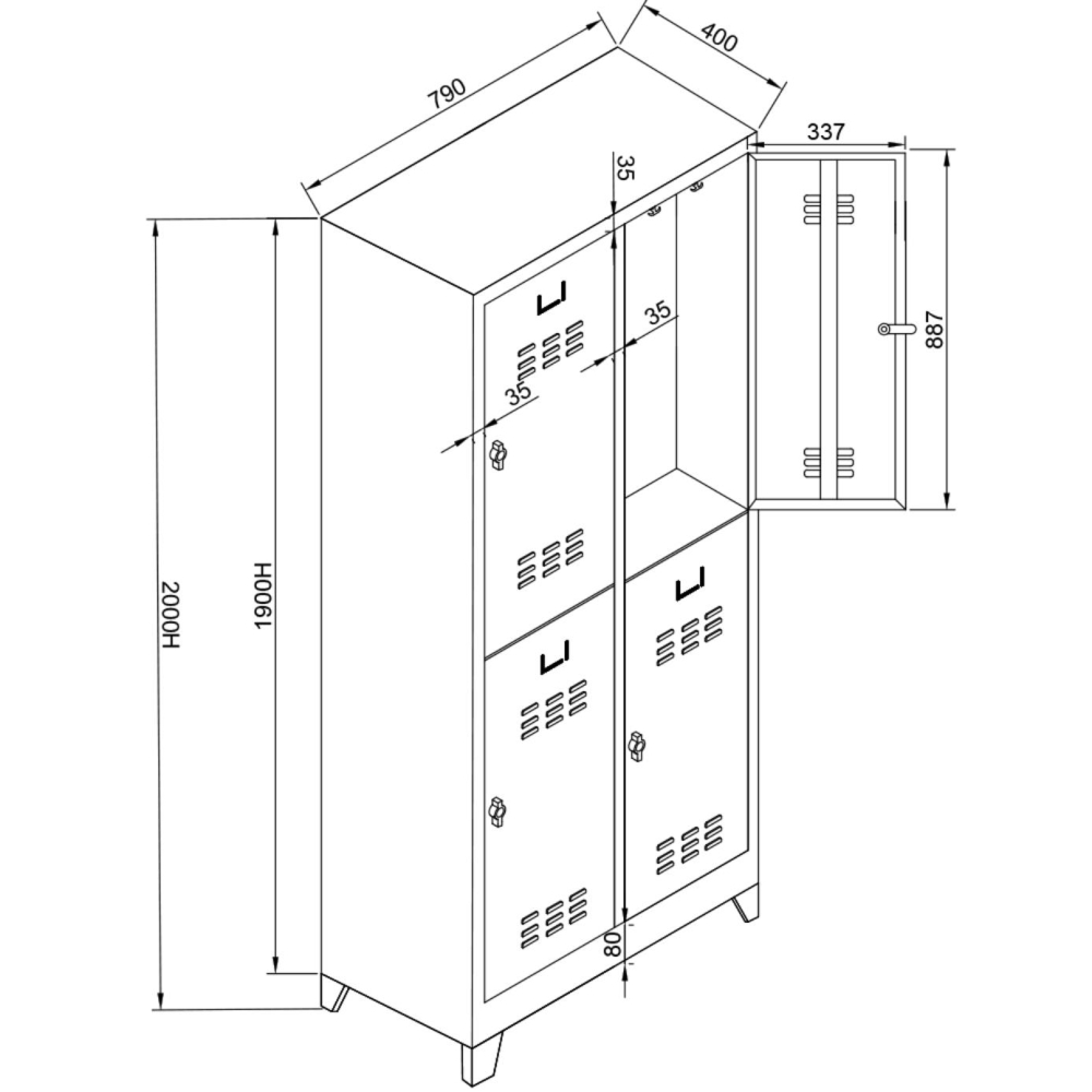 Metal Dört Yarım Boy Kapılı Soyunma Dolabı Açık Gri