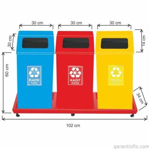 Garanti Metal 1838 Boyalı 3 lü Geri Dönüşüm Çöp Kovası