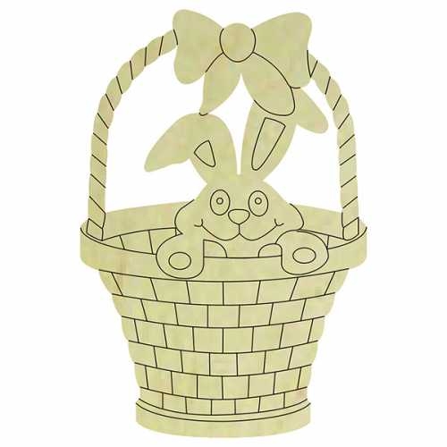 Boyanabilir Lazer Kesim Sepet İçinde Tavşan Şeklinde Mini Ahşap Süsler