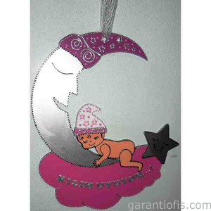 Boyanabilir Lazer Kesim Ham Ahşap Aydedeli Bebek Uyuyor Duvar/Kapı Süsü