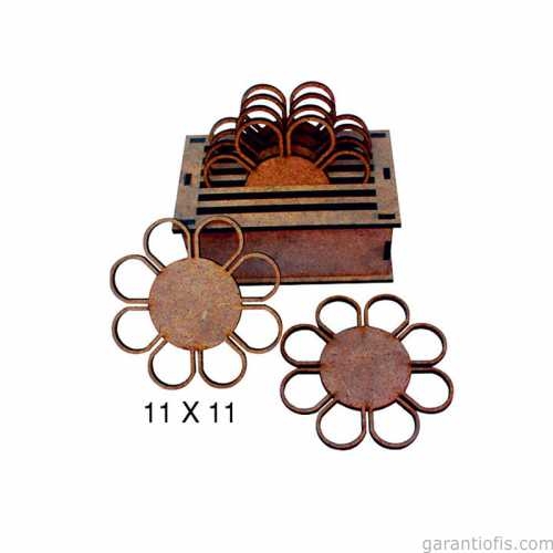 Hobi-Art L 261 Ham Ahşap Çiçek Tasarımlı Bardak Altlığı