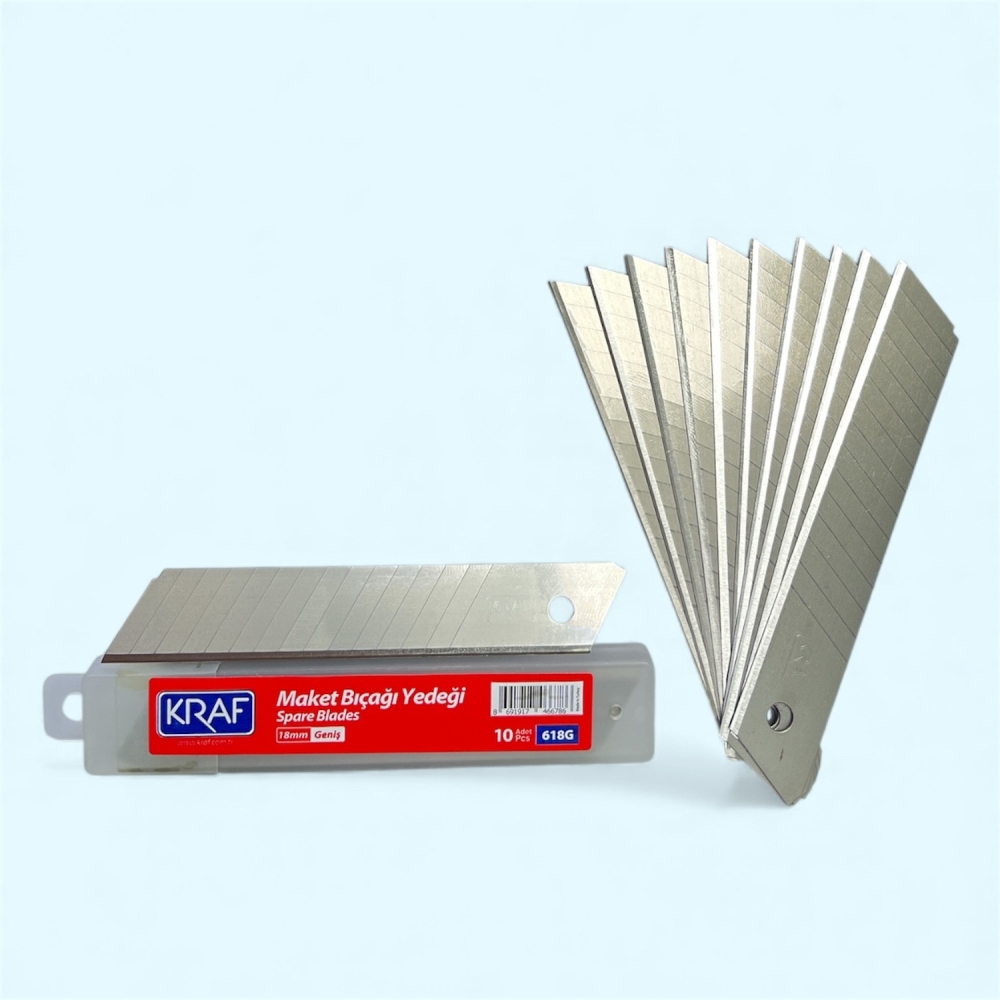 Kraf 618G Geniş 18mm Maket Bıçağı Yedeği 14 Kırım 100 Adet