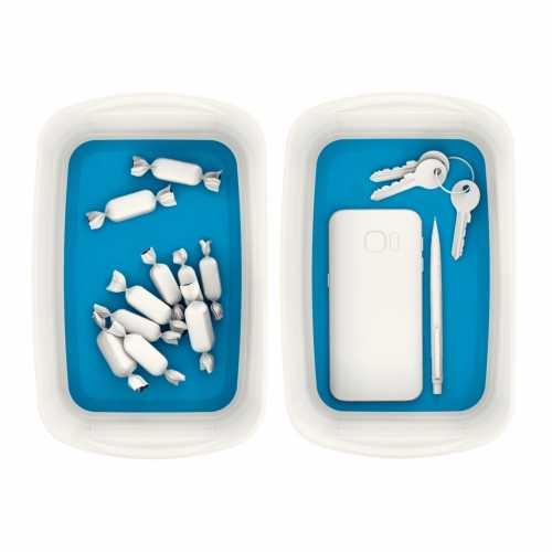 Hızlı ve kolay düzenleme ve akıllı depolama için stil sahibi, iki renkli kapaksız saklama kutusu Stil sahibi görünüm için su geçirmez, sağlam ve çizilmeye karşı dayanıklı ABS materyalden üretilmiştir. BPA içermez. Kullanılmadığı zamanlarda, yer kaplamaması için, kutular iç içe konularak kaldırılabilir. Yuvarlak köşeleriyle temizlemesi kolay