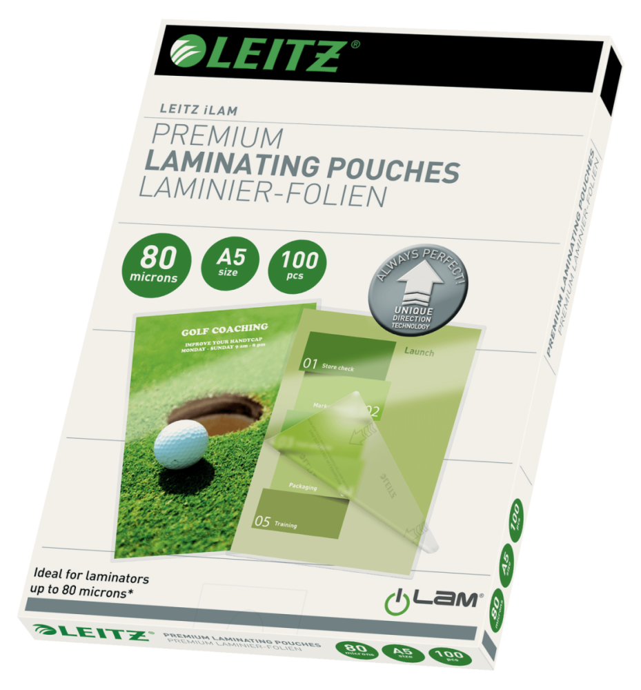 Sıkışma yapmayan, mükemmel laminasyonu garanti eden Yüksek kaliteli UDT laminasyon poşetleri dokümanlarınızı kire, neme ve çizilmeye karşı korur. Leitz laminasyon filmlerini garantiofis.com'dan hızlıca satın alabilirsiniz.Poşetin makineye hangi yönde yerleştirilmesi gerekitğini gösteren UDT-Eşsiz Yön Teknolojisi ile daima kolay laminasyon Sıkışmama garantisi*