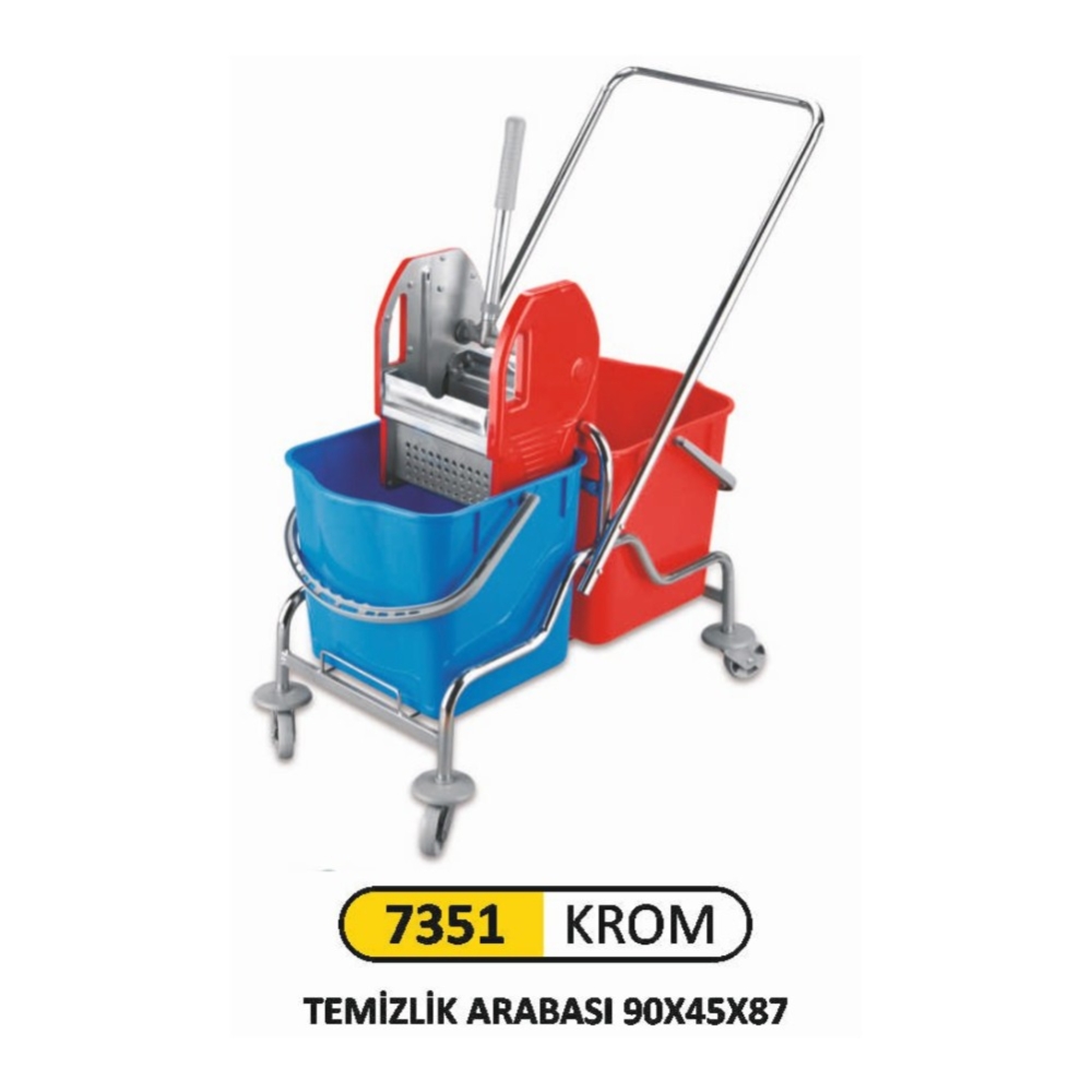 Ekstra kalite temizlik arabası. Gövdesi krom metal alaşım olup, ağır çalışma koşullarında uzun dayanım sağlar. Presi metal rindo. Her türlü mop ile kullanılabilir. Çift bölme sayesinde değişik temizlik ürünlerinin kullanımı konusunda kolaylık sağlar.