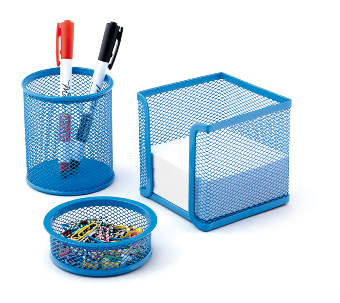 Perfore metal 3'lü set, kalemlik, ataşlık, küp notluk.