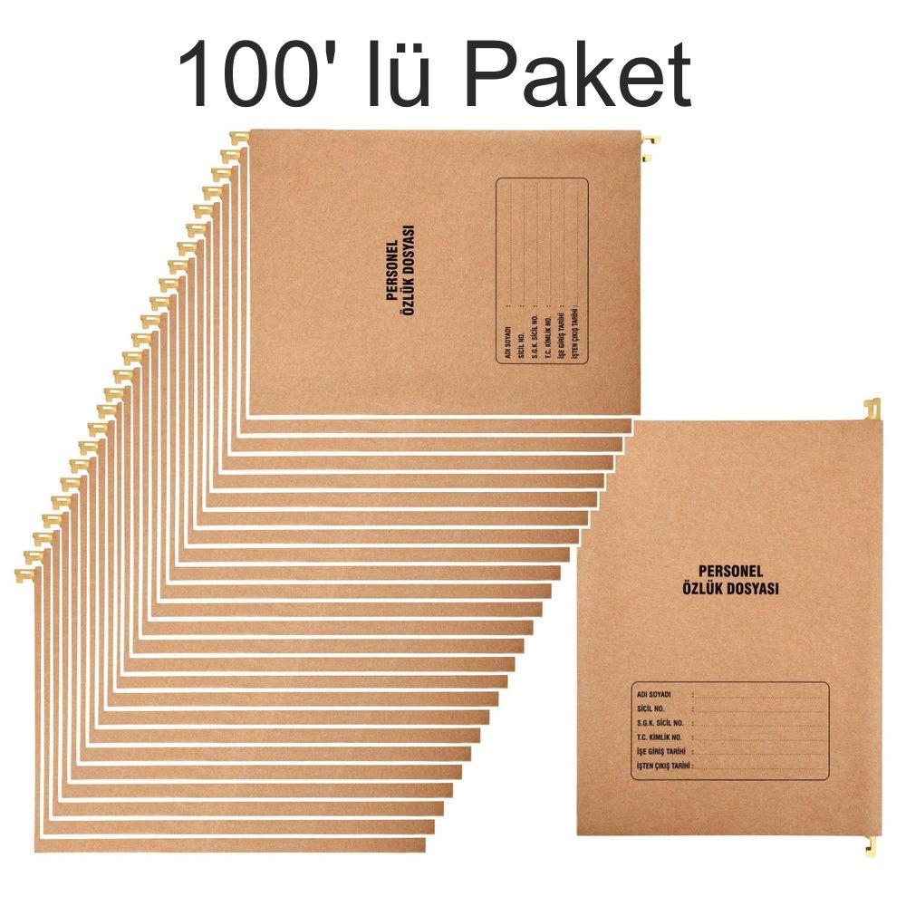 Askılı personel özlük dosyası 8 yapraklıdır, tamamı kraft karton malzemeden üretilmiştir, demir askıya sahip olduğu için tüm askılı dosya dolaplarına ve askılı dosya havuzlarına uyumludur. Üst kısımda isimlik mevcuttur.