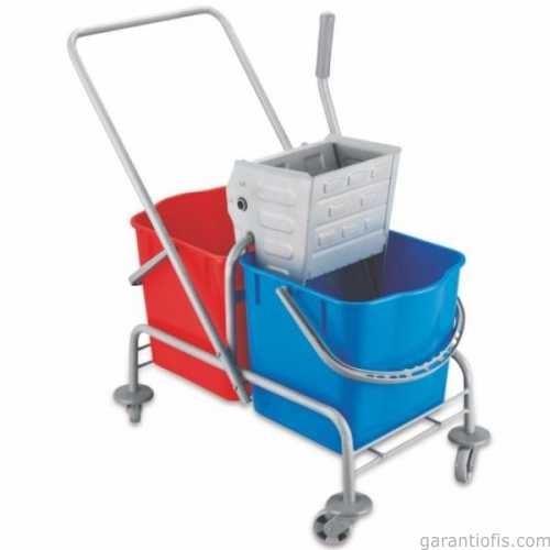 Garanti Metal 7353 Metal Gövdeli Boyalı Metal Presli Çift Kovalı Temizlik Arabası