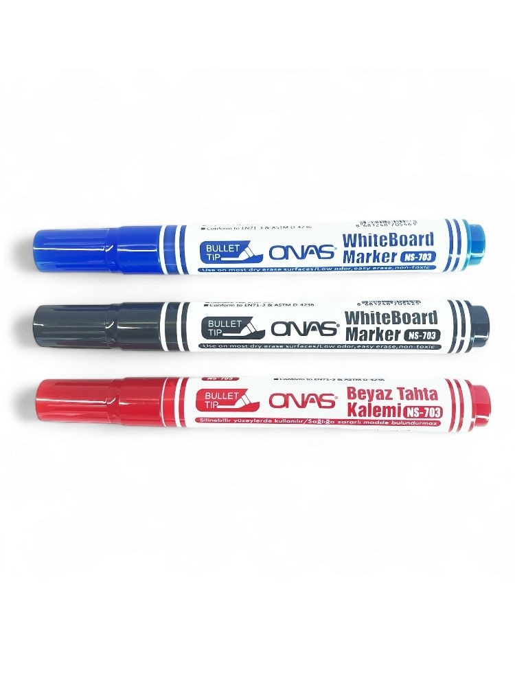 ONAS NS-703 Beyaz Yazı Tahtası Kalemi , ofislerde, okullarda, dershanelerde ve evde çalışma alanlarında sıklıkla tercih edilen kaliteli bir yazı tahtası modelidir. Hem dayanıklılığı hem de şık tasarımı sayesinde uzun yıllar güvenle kullanılabilir. Kullanıcı dostu yapısı ile pratik bir yazı–silme deneyimi sunar.
