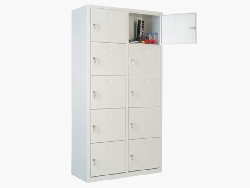Öğrenciler, öğretmenler veya personellerin evraklarını muhafaza etmesi için tasarlanmış 10 gözden oluşan dolap.
