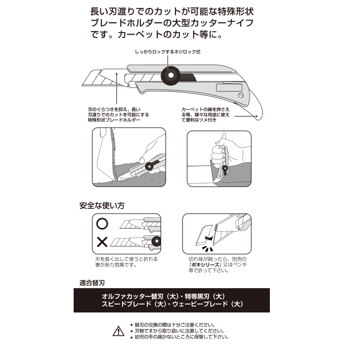OLFA OL Uzatılmış Metal Ağızlı ve Kuyruk Bıçaklı Vidalı Kilit Mekanizmalı Geniş Maket Bıçağı