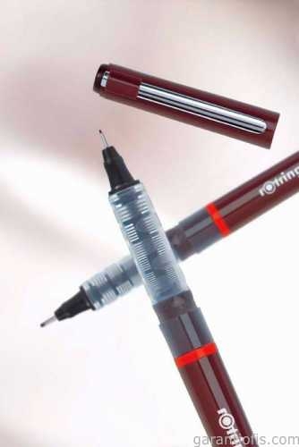 Solmayan, ışığa ve suya dayanıklı pigment mürekkebe ve düz kenarların veya şablonların düzgün çizilmesi için metal kaplamalı fiber uca sahiptir.