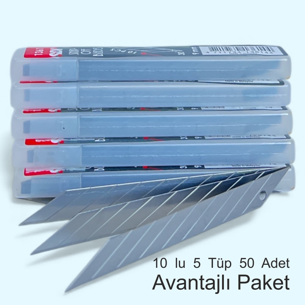Ekonomik Paket İçeriği 5 tüp x 5 adet olmak üzere toplam 50 bıçak, uzun süreli stok avantajı sağlar.