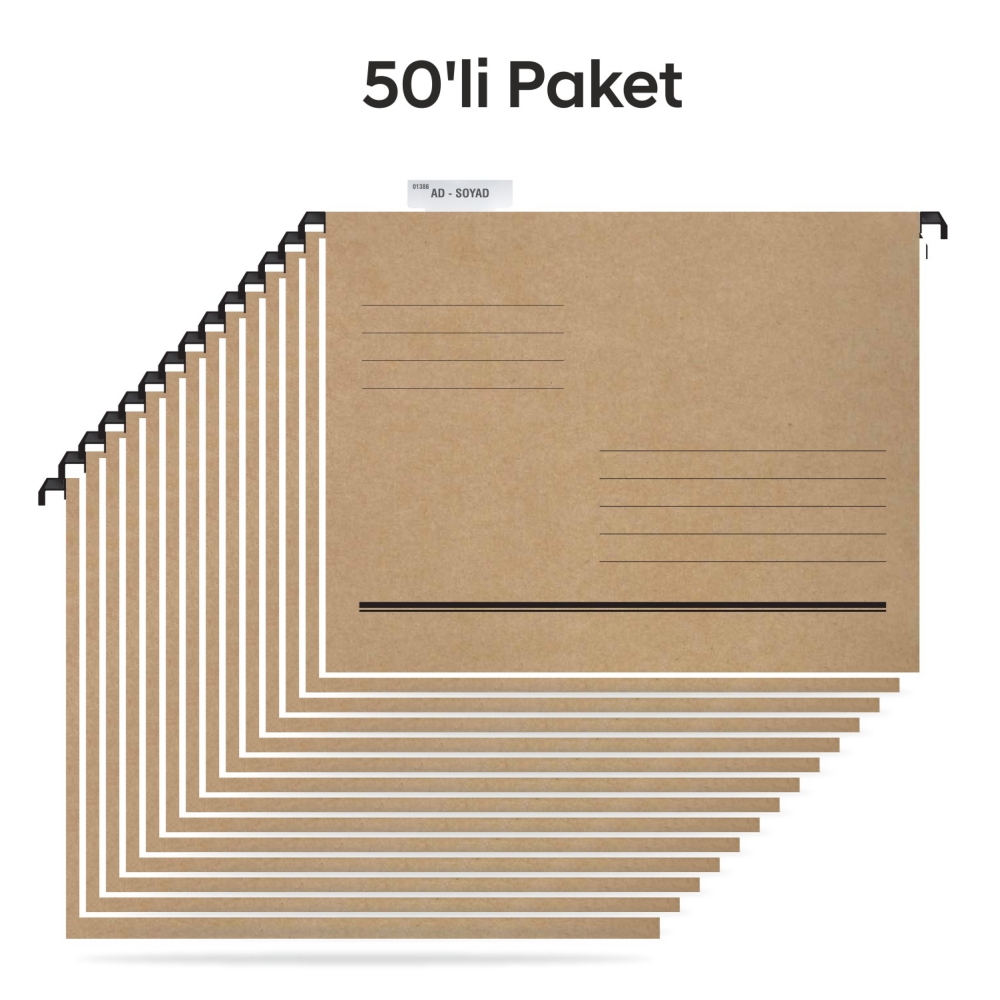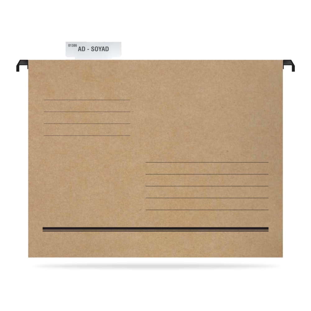 Dosyanın askılı ve telli mekanizması, evrakların kolayca yerleştirilip çıkarılmasını sağlar. Askı sistemi sayesinde dolap, ray veya dosya kutularına rahatlıkla asılabilir. Böylece belgeleriniz hem düzenli kalır hem de aradığınız dokümana saniyeler içinde ulaşabilirsiniz.